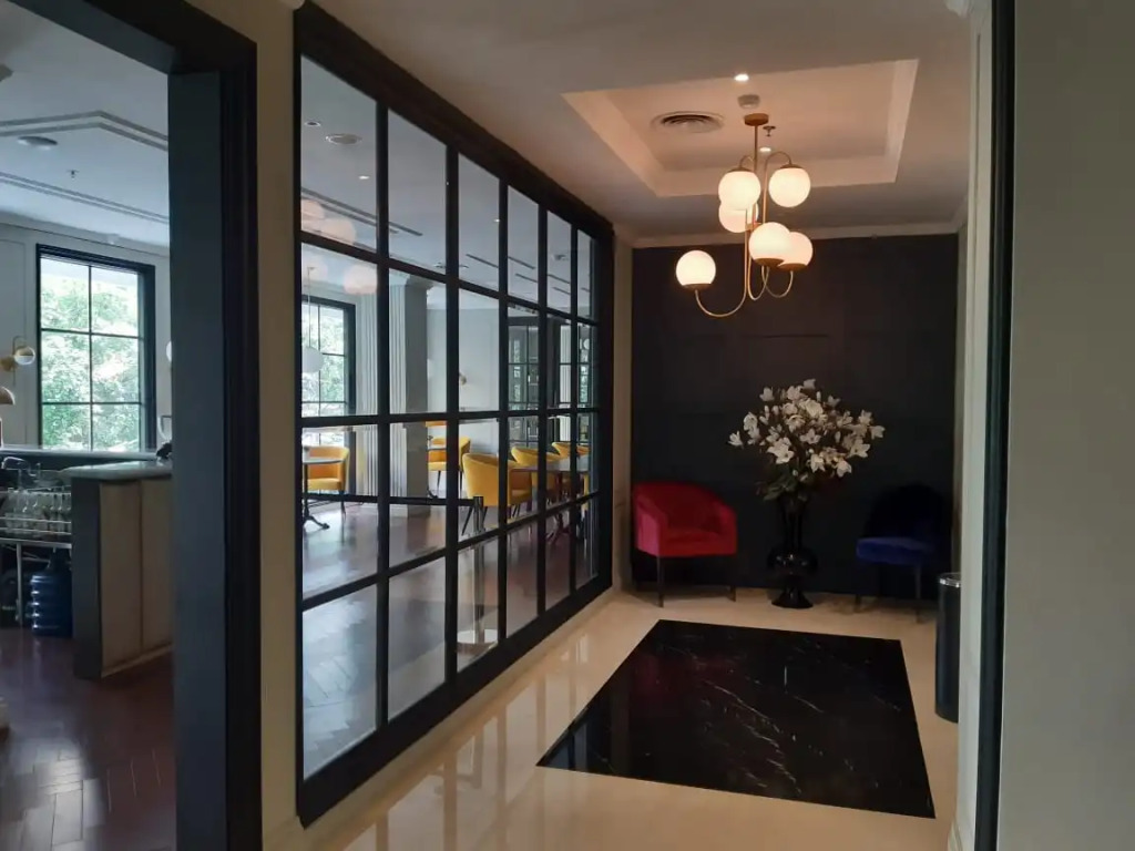 Удобно для гостей с ограниченными возможностями: на верхние этажи гостей поднимает лифт. А ещё в распоряжении гостей прачечная, банкомат, сейф и консьерж.