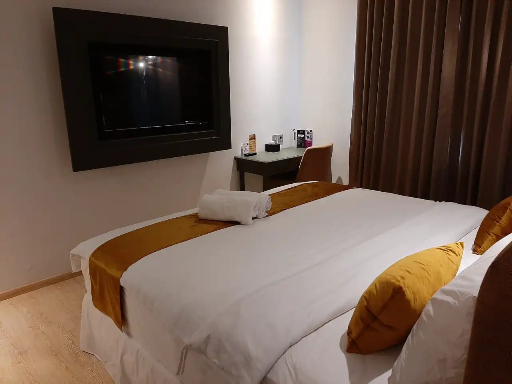 Номер уютно обставлен и оснащён необходимым, чтобы отдохнуть после долгого и насыщенного дня. Имеются душ, телевизор, мини-бар, халат и тапочки. Оснащение зависит от выбранной категории номера.
