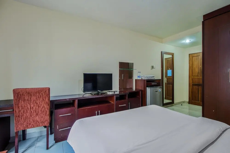 В номере вы найдёте душ и телевизор. Оснащение зависит от выбранной категории номера.