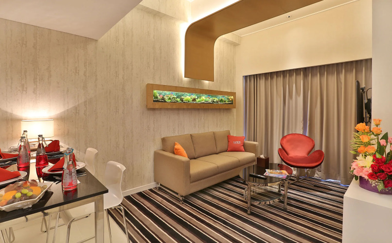 Номер уютно обставлен и оснащён необходимым, чтобы отдохнуть после долгого и насыщенного дня. Имеются душ, телевизор, мини-бар, халат и тапочки. Перечисленные услуги есть не во всех номерах.