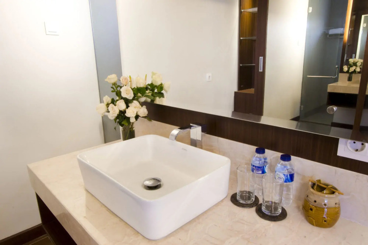 В номере вы найдёте душ. Оснащение зависит от выбранной категории номера.