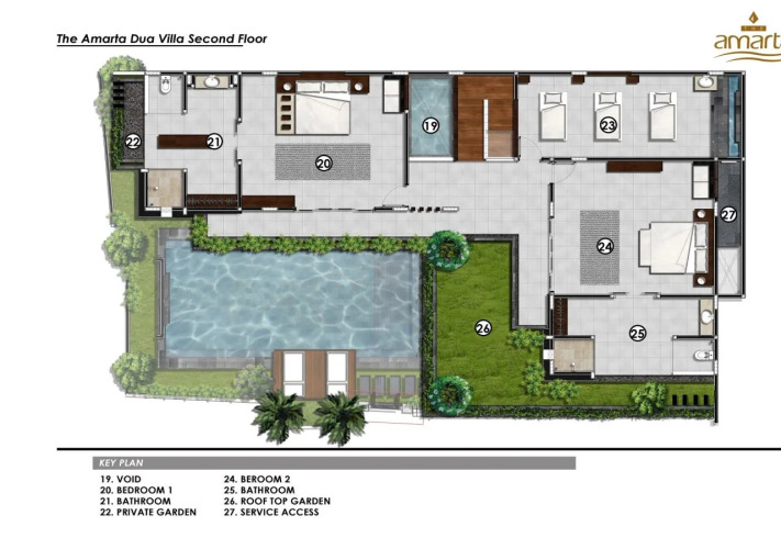 Экологичный и здоровый отдых начинается здесь. Вилла «The Amarta Villa» расположена в Джимбаране. Эта вилла находится 2 км от центра города. Рядом с виллой можно прогуляться. Неподалёку: Пляж Джимбаран, Культурный парк Гаруда Вишну Кэнкана и Пляж Куты.