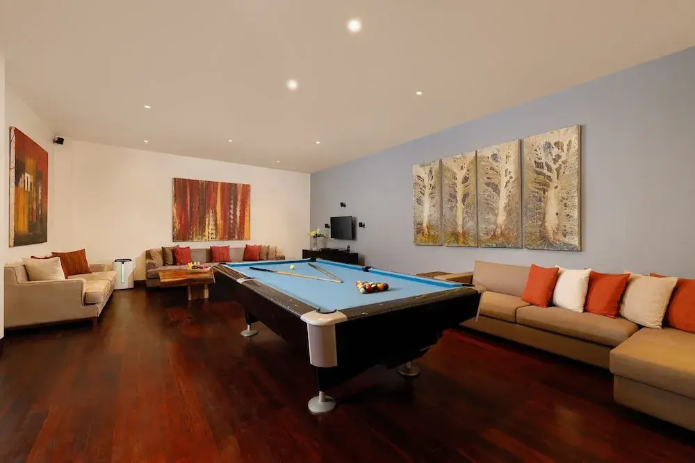 Любителям спорта подготовили фитнес-центр. Скучно не будет, ведь на вилле к услугам отдыхающих площадка для барбекю. На вилле есть игровые детские комнаты. Будьте готовы к тому, что детям будет весело, а вам придется коротать вечер со взрослыми. Дополнительно: прачечная и консьерж.