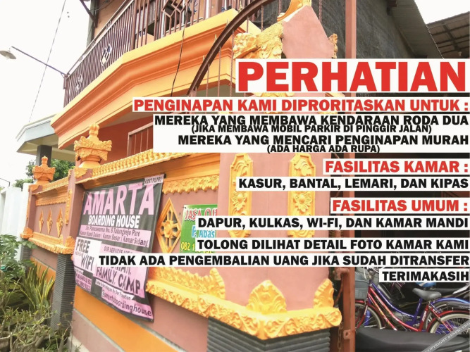 Отель Amarta Boarding House, адрес на карте Jombang, Jalan Pancawarna 8, Tulungrejo, Pare, Kediri 64212, Jawa Timur, с описанием номеров и доступностью онлайн бронирования на сайте vashotel.ru , цены проживания и удобства.