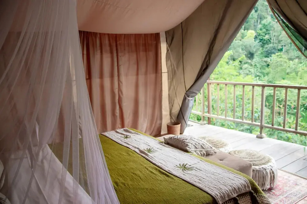Здесь не придётся придумывать, куда пойти, — всё интересное уже есть рядом. Курорт «Glamping tent near the waterfall» находится в Кубутамбахане. Этот курорт расположен в 30 км от центра города. Рядом с курортом можно прогуляться. Неподалёку: Храм Улун Дану Братан, Балийский ботанический сад и Тегалалангская рисовая терраса.