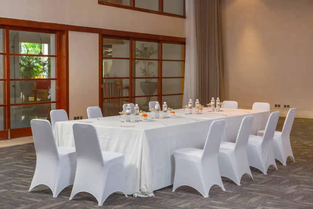 Здесь будем баловать себя водными процедурами: есть бассейн и открытый бассейн. Для участников деловых встреч предусмотрены конференц-зал и оборудование для встреч и презентаций. Если планируете экскурсии, обратите внимание на экскурсионное бюро курорта. Сотрудники курорта по запросу организуют гостям трансфер.