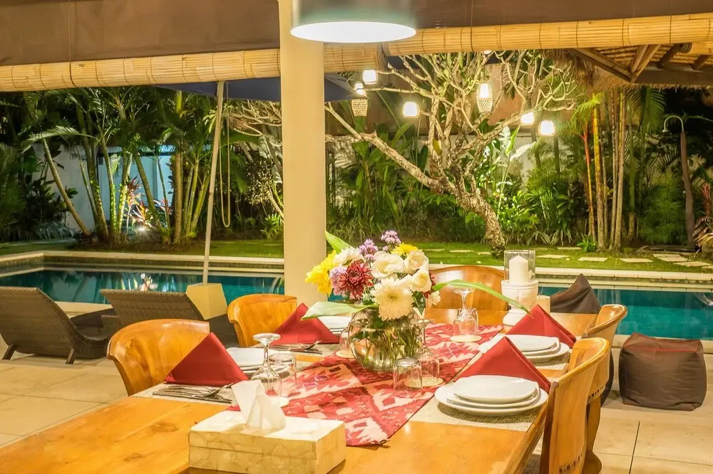 Отель Umah Maya Villa Seminyak 4 звезды, адрес на карте Кута, Jl. Laksmana Gg. Aora 44 Seminyak, с характеристиками номеров и правом онлайн бронирования на сайте vashotel.ru , цены проживания и удобства.