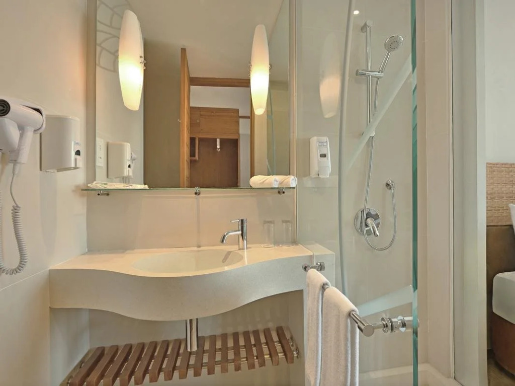 В номере вас будут ждать душ, телевизор и тапочки. Оснащение зависит от выбранной категории номера.