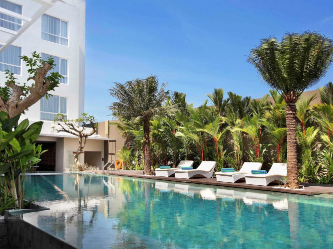 Отель Mercure Bali Harvestland Kuta, адрес на карте Кута, Jl. By Pass Ngurah Rai No. 8 Simpang Siur, с описанием номеров и доступностью онлайн бронирования на площадке vashotel.ru , цены проживания и удобства.