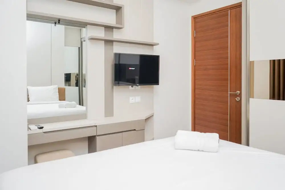 Отель Spacious 1BR Apartment at Marigold Nava Park, адрес на карте Legok, Jl. Raya Grand Blvd., с описанием номеров и возможностью онлайн бронирования на сайте vashotel.ru , стоимость проживания и удобства.
