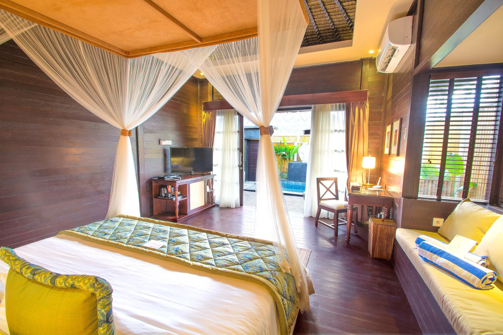 Номер уютно обставлен и оснащён необходимым, чтобы отдохнуть после долгого и насыщенного дня. Имеются DVD-плеер, душ, телевизор, мини-бар, халат и тапочки. Оснащение зависит от выбранной категории номера.