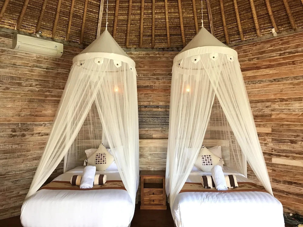В погоне за впечатлениями важно возвращаться туда, где можно хорошо отдохнуть. Отель «Mushroom Bay Villas Hut» находится в Лембонган-Айленде. Этот отель располагается в пешей доступности от центра города. Рядом с отелем — Пляж Нуса Лембонган, Лес Обезьян в Убуде и Пляж Нуса Дуа.