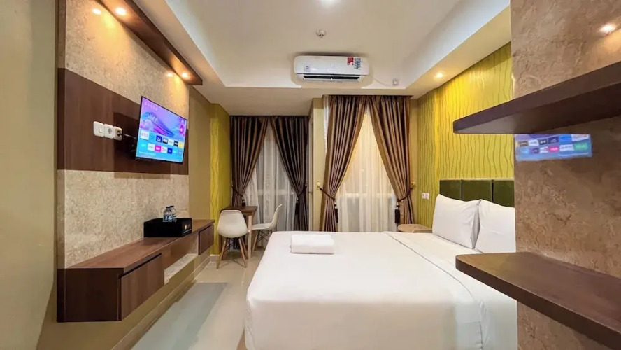 Отель Modern Studio Room Apartment At Tamansari Skylounge Makassar, адрес на карте Макассар, B FL9 #28 Jl. Poros Bandara Baru, с описанием номеров и возможностью онлайн бронирования на сайте ВашОтель.RU , цены проживания и удобства.