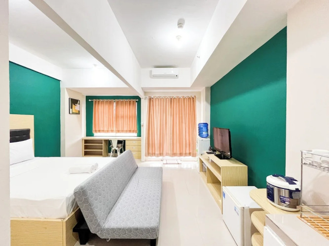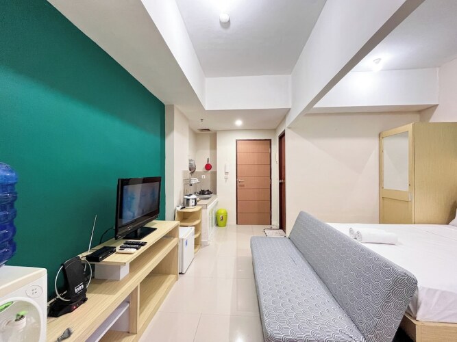 Отель Spacious Studio Room At Vida View Makassar Apartment, адрес на карте Макассар, Asthon FL20 #G Jl. Topaz Raya, с характеристиками номеров и возможностью онлайн бронирования на ресурсе vashotel.ru , стоимость проживания и удобства.