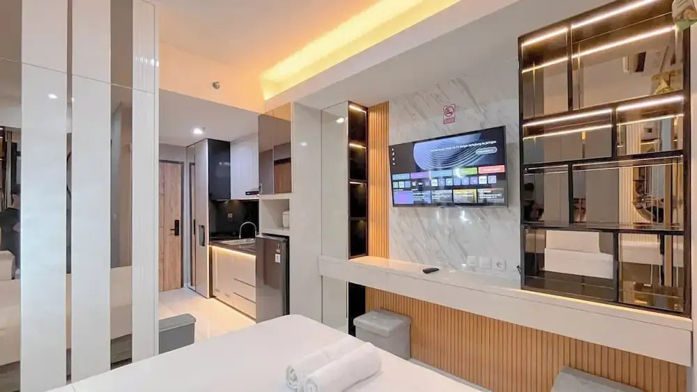 Отель The Luxury Studio At Delft Ciputra Makassar Apartment, адрес на карте Макассар, A FL2 #29 Jl. CitraLand Boulevard No. 6, с характеристиками номеров и возможностью онлайн бронирования на ресурсе vashotel.ru , цены проживания и удобства.