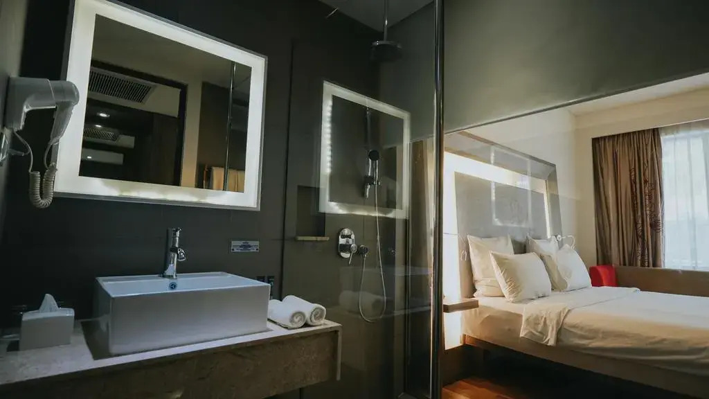 В номере гостей ждут душ, телевизор, мини-бар, халат и тапочки. Оснащение зависит от выбранной категории номера.