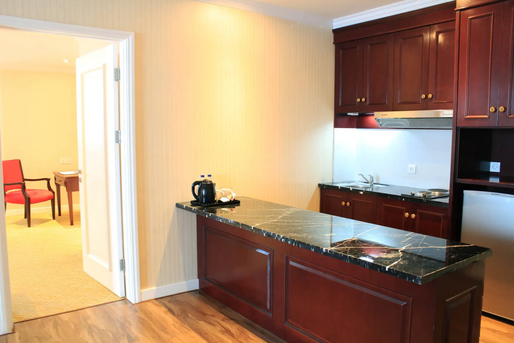 Номер уютно обставлен и оснащён необходимым, чтобы отдохнуть после долгого и насыщенного дня. Имеются душ, телевизор, мини-бар и тапочки. Перечисленные услуги есть не во всех номерах.