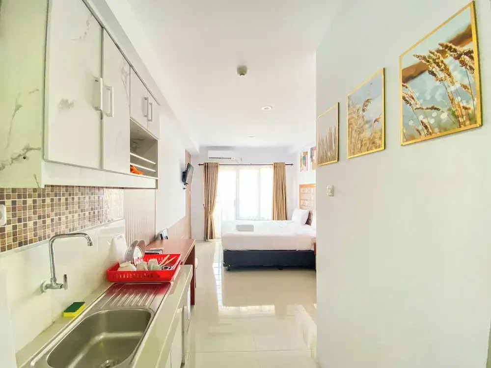 Отель Cozy And Simply Studio At Skyview Medan Apartment, адрес на карте Медан, Tower 1 FL17 #49A Jl. Abdul Hakim, с описанием номеров и доступностью онлайн бронирования на площадке vashotel.ru , цены проживания и удобства.