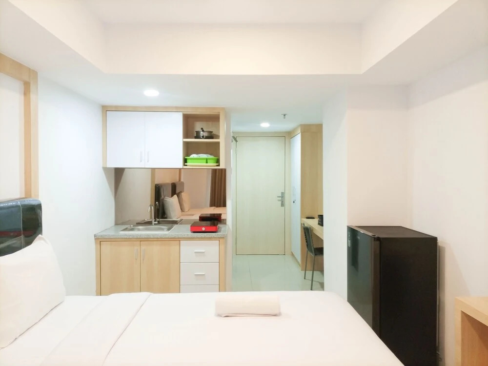 Отель Modern Studio At De Prima Apartment, адрес на карте Медан, Tower 1, 19FL, Unit 01, Jl. Gelas No.37, с характеристиками номеров и доступностью онлайн бронирования на сайте vashotel.ru , цены проживания и удобства.