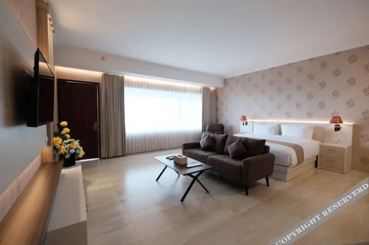 Номер уютно обставлен и оснащён необходимым, чтобы отдохнуть после долгого и насыщенного дня. Имеются душ, телевизор, мини-бар и тапочки. Оснащение зависит от выбранной категории номера.