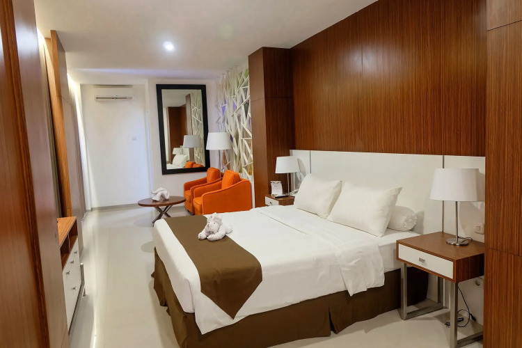 Отель Front One Hotel Pamekasan Madura 3 звезды, адрес на карте Pamekasan, Jalan Joko Tole No. 282, Madura, с описанием номеров и доступностью онлайн бронирования на сайте vashotel.ru , стоимость проживания и удобства.