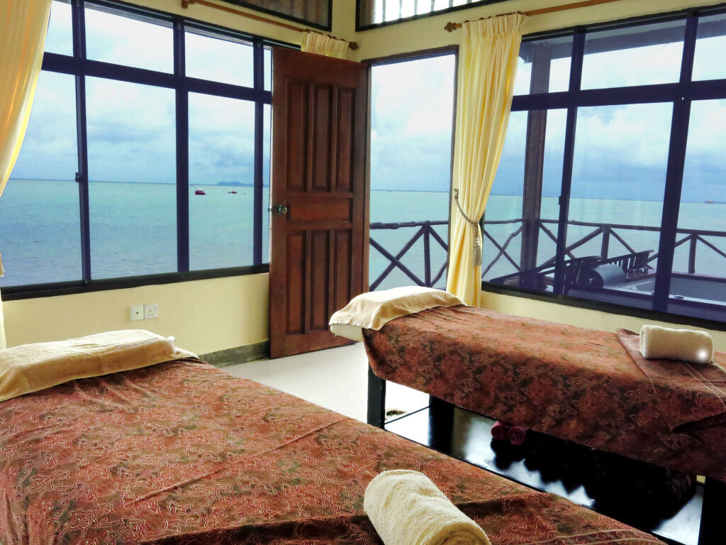 Также для гостей на курорте: массажный кабинет, сауна, спа-центр и врач. Спортивные гости оценят дайвинг. Скучно не будет, ведь на курорте к услугам отдыхающих караоке, площадка для пикника и площадка для барбекю. Для тех, кто не представляет отдых без водных удовольствий, есть бассейн и открытый бассейн.