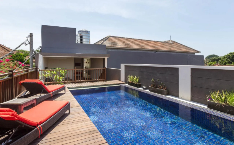 Отель Svarna Hotel Sanur, адрес на карте Санур, Jalan Danau Tamblingan 50, Sanur 80228, Denpasar, Bali, с описанием номеров и доступностью онлайн бронирования на сайте vashotel.ru , цены проживания и удобства.