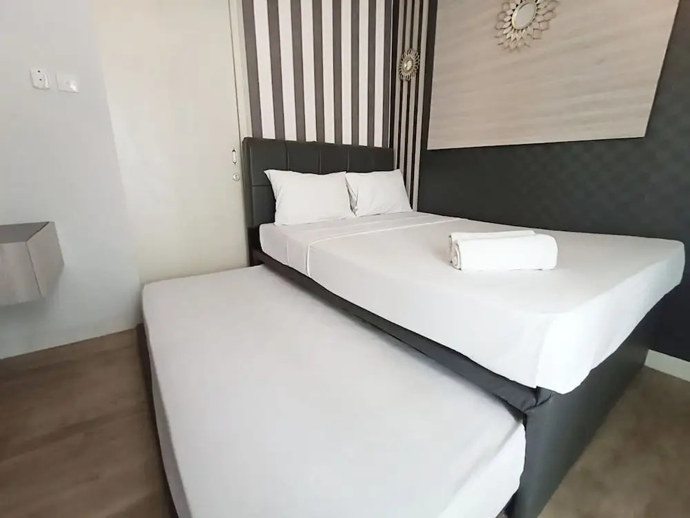 Отель Homey And Cozy Living Studio Amartha View Apartment, адрес на карте Семаранг, Tower 1 FL26 #17 Bringin, Ngaliyan, с характеристиками номеров и возможностью онлайн бронирования на ресурсе vashotel.ru , цены проживания и удобства.