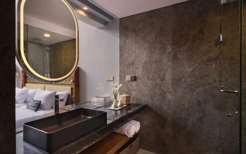 Номер уютно обставлен и оснащён необходимым, чтобы отдохнуть после долгого и насыщенного дня. Имеются будильник, душ, телевизор, мини-бар, халат и тапочки. Перечисленные услуги есть не во всех номерах.