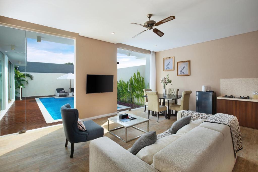 Здесь не придётся придумывать, куда пойти, — всё интересное уже есть рядом. Курорт «The Grand Daha A Luxury Resort & Spa» располагается в Семиньяке. Этот курорт находится 2 км от центра города. Рядом с курортом можно прогуляться. Неподалёку: Пляж Куты, Пляж Семиньяк и Пляж Легиан.