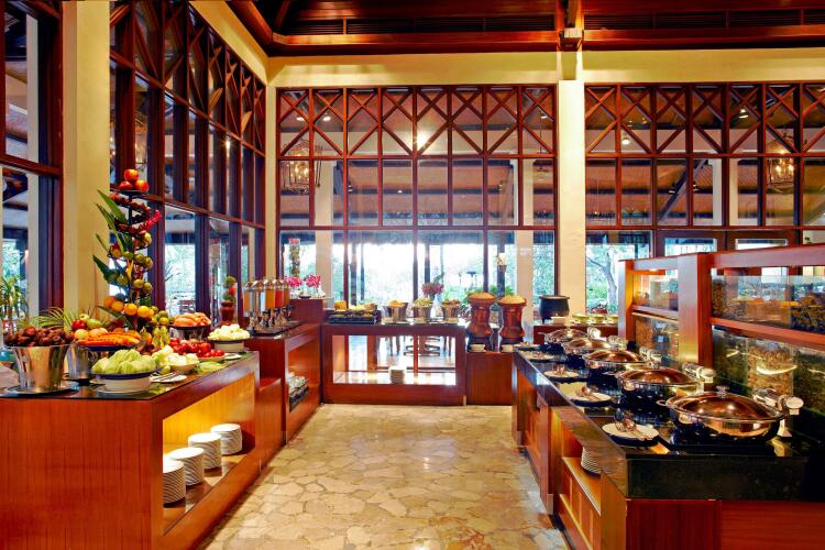 Каждое утро в отеле сервируется разнообразный завтрак, который включает много фруктов, свежую выпечку, ароматный кофе и соки. При необходимости вам могут подать завтрак в номер. В элегантном ресторане Kebun Anggrek с террасой вы можете насладиться восхитительными блюдами местной, китайской и западной кухни и любимыми напитками, а также полюбоваться живописными видами на сад. В пляжном ресторане Berugak подают искусно приготовленные традиционные блюда с освежающими напитками. Разнообразные напитки и легкие закуски в течение всего предлагает бар Sunset.