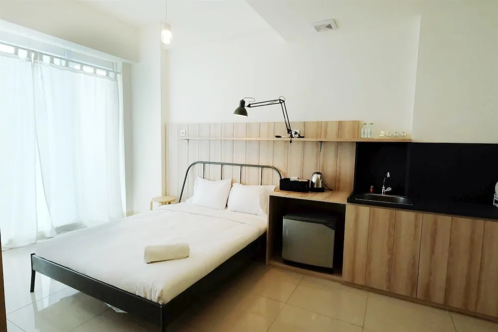 Отель Classic Studio Tree Park Apartment near ICE BSD By Travelio, адрес на карте Южный Тангеранг, Lengkong Gudang, 15321 Tangerang, Indonesia, с описанием номеров и доступностью онлайн бронирования на сайте ВашОтель.RU , стоимость проживания и удобства.