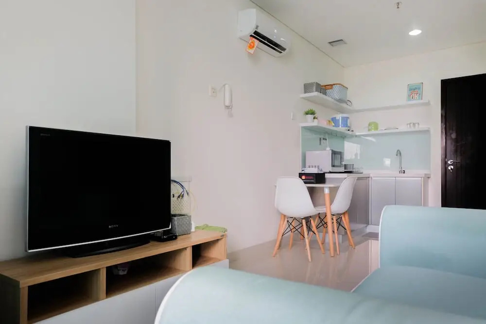 Отель Cozy and Tidy 1BR Apartment at Brooklyn Alam Sutera, адрес на карте Южный Тангеранг, Tower B 15FL Unit R Jl Alam Sutera BLVD, с характеристиками номеров и правом онлайн бронирования на площадке vashotel.ru , цены проживания и удобства.