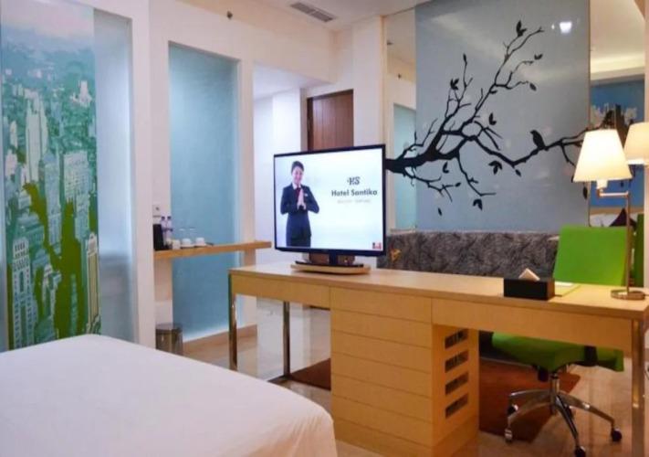 В отеле Santika BSD City Serpong 150 номеров с видом на сад или город. В каждом номере есть кондиционер, мини-бар, сейф, телефон, ЖК-телевизор с кабельными каналами, а также набор для приготовления чая и кофе.
