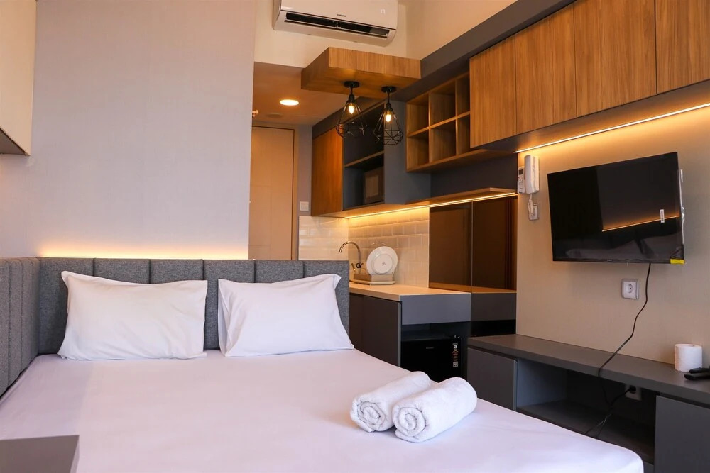 Отель Studio (No Kitchen) With Sea View Tokyo Riverside Pik 2 Apartment, адрес на карте Южный Тангеранг, Tower Edogawa FL17 #38 Lemo, с характеристиками номеров и доступностью онлайн бронирования на ресурсе vashotel.ru , стоимость проживания и удобства.