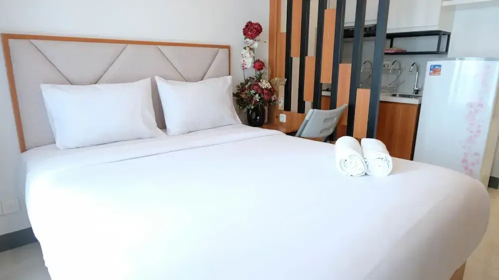 Отель Calm Studio At Supermall Mansion Apartment Benson Tower, адрес на карте Сурабая, Tower Benson 10FL #36, Jl. Raya Lontar, с описанием номеров и возможностью онлайн бронирования на ресурсе vashotel.ru , стоимость проживания и удобства.