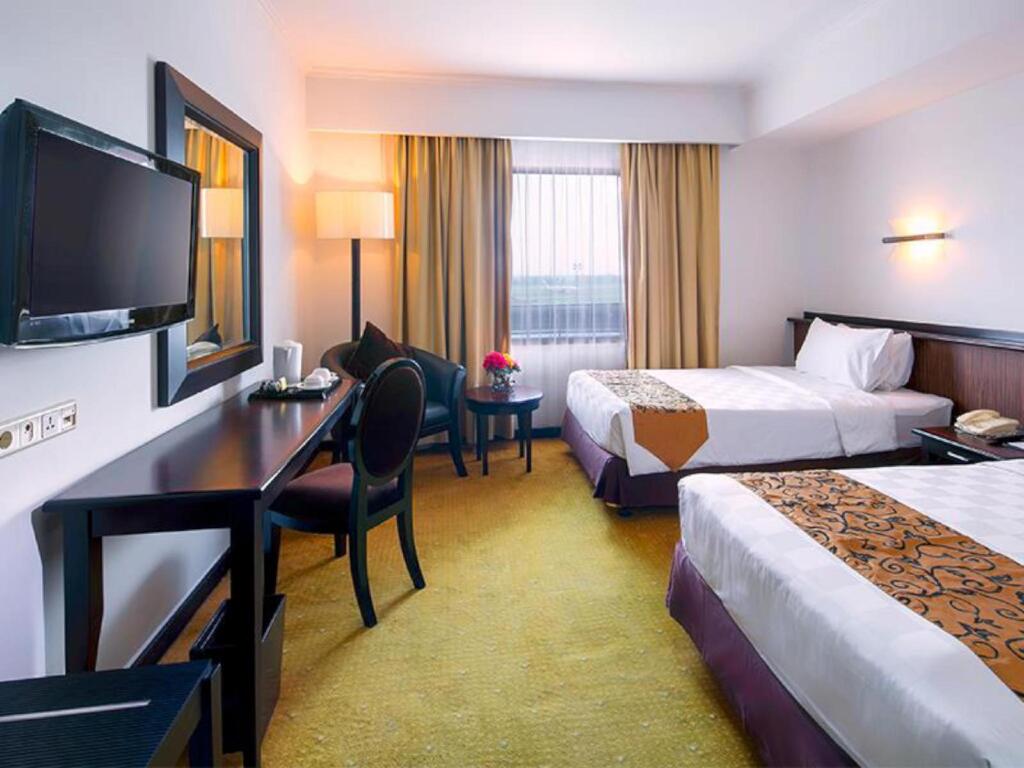 Отель Jakarta Airport предлагает забронировать 82 номера с хорошей звукоизоляцией, а также современными дизайнерскими интерьерами, элегантной мебелью и прекрасным техническим оснащением. В каждом номере вы найдете ЖК-телевизор со спутниковыми каналами, сейф, кондиционер и телефон.