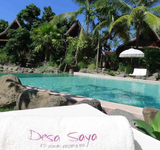 Здесь не придётся придумывать, куда пойти, — всё интересное уже есть рядом. Курорт «Desa Saya Eco Luxury Resort & Spa» располагается в Теджакуле. Этот курорт находится в 3 км от центра города. Рядом с курортом можно прогуляться. Неподалёку: Гора Батур, Храм Улун Дану Братан и Балийский ботанический сад.