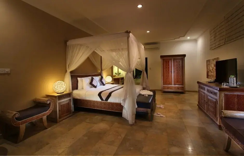 Бюджетный вариант для активного отдыха — отель «Frangipani Villas» располагается в Убуде. Этот отель находится в 6 км от центра города. Рядом с отелем можно прогуляться. Неподалёку: Лес Обезьян в Убуде, Дворец Убуда и Храм Таман Аюн.