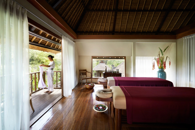 Курортный спа-отель Kamandalu предлагает своим постояльцам 56 комфортабельных номеров, из которых открывается чудесный вид на горы, реку и сад. Номера оснащены всем необходимым: минибаром, телефоном, сейфом, телевизором, кондиционером.