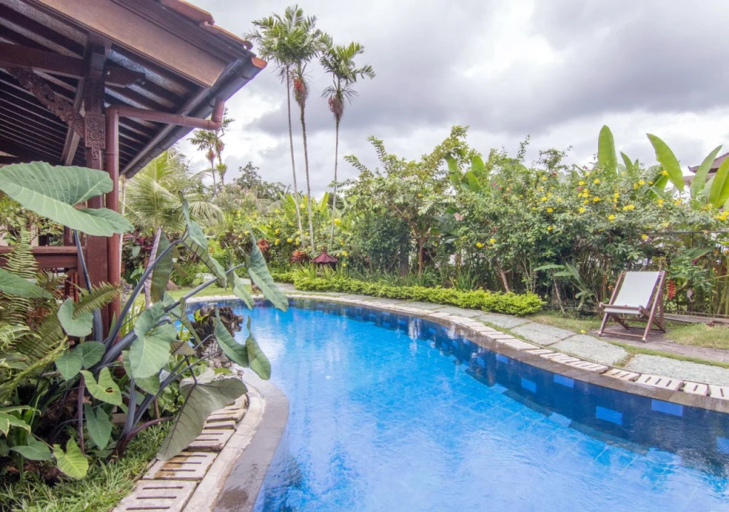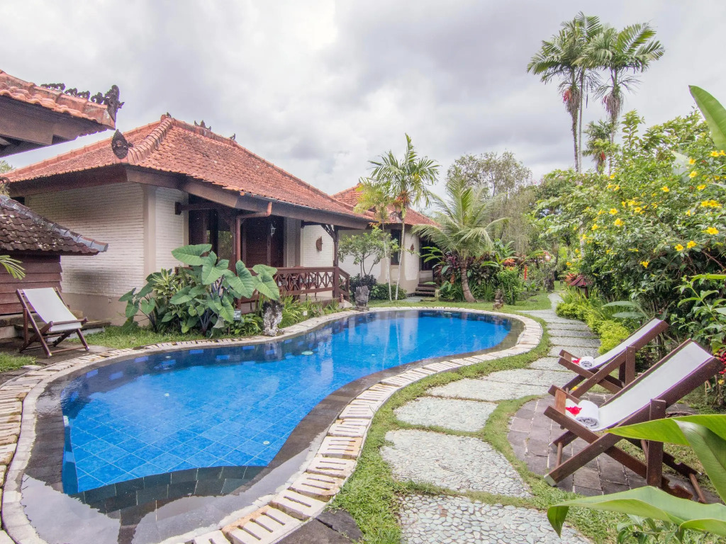 Отель Villa Chempaka 3 звезды, адрес на карте Убуд, Jl. Bisma, с описанием номеров и возможностью онлайн бронирования на ресурсе ВашОтель.RU , стоимость проживания и удобства.