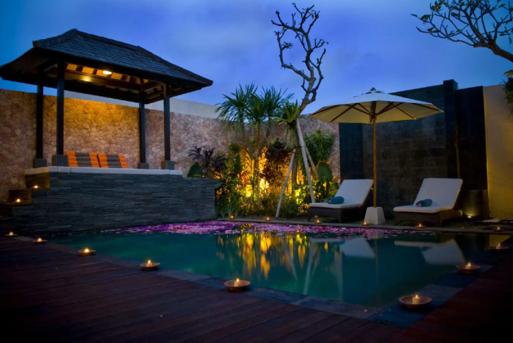 Четырехзвездочный мини-отель Chandra Kirana Luxury Villas, Джимбаран, расположен на прекрасной вилле, окруженной садом, недалеко от пляжей Нью Кута и Баланган. За 15 минут вы доедете до международного аэропорта Нгурах Рай и храма Улувату.