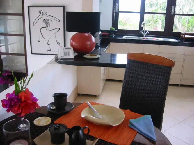 Возле виллы Karang Bali есть ресторан, где подаются блюда индонезийской и европейской кухни, а также имеется детское меню и широкий выбор напитков. Каждое утро для гостей сервируется бесплатный завтрак "шведский стол". В хорошую погоду вы можете насладиться трапезой на открытой террасе.