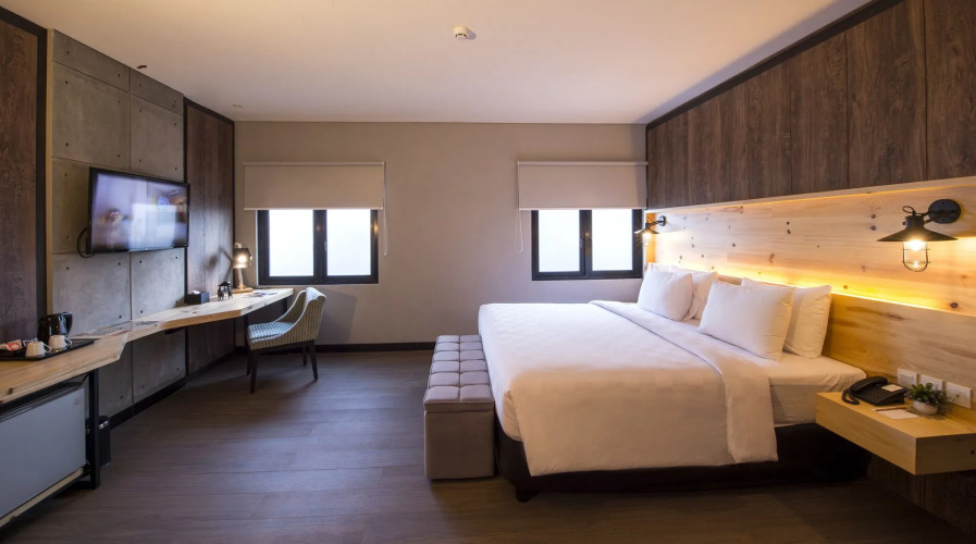 Номер уютно обставлен и оснащён необходимым, чтобы отдохнуть после долгого и насыщенного дня. Имеются тапочки. Оснащение зависит от выбранной категории номера.