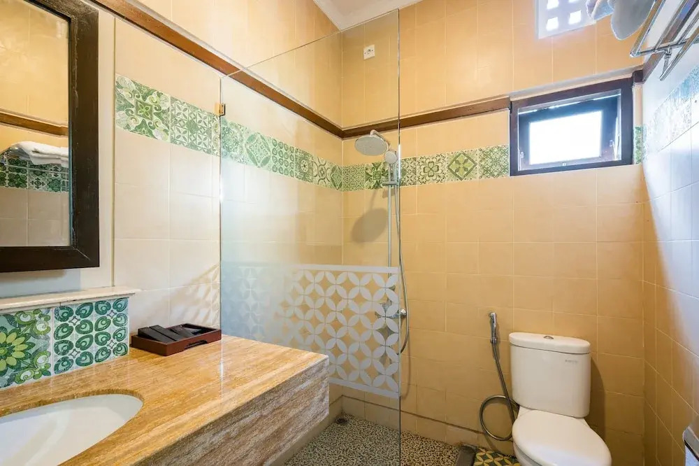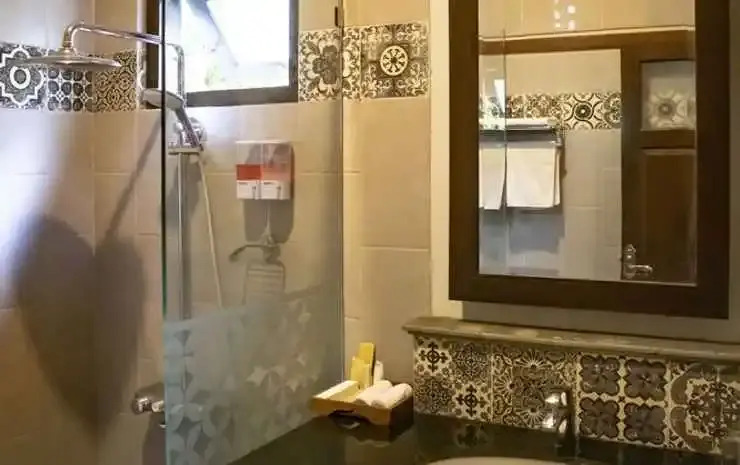 В номере вы найдёте душ. Оснащение зависит от выбранной категории номера.
