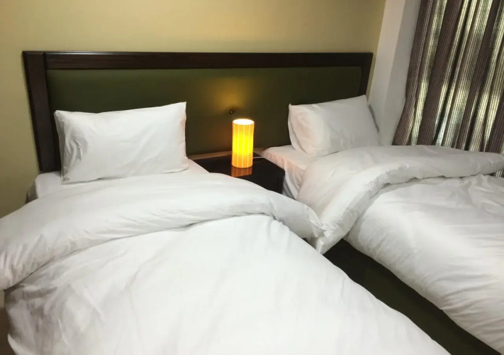 В номере вы найдёте душ, телевизор и тапочки. Оснащение зависит от выбранной категории номера.