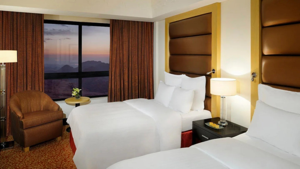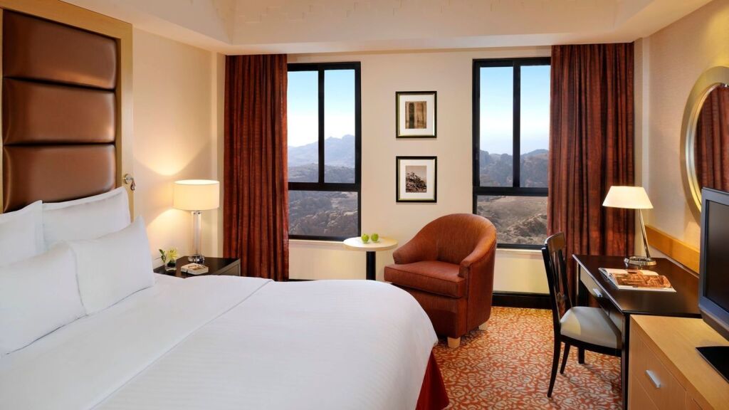 В отеле Petra Marriott 100 номеров. В каждом номере есть кондиционер, телефон и телевизор. Если вы захотите пить, можете проверить содержимое минибара или взять бесплатную бутилированную воду. Для удобства в вашем распоряжении утюг и гладильная доска. По утрам в номер доставляется свежая пресса.