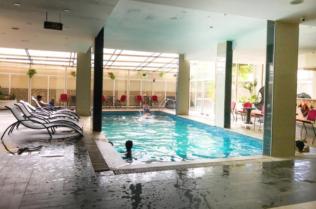 Здесь будем баловать себя водными процедурами: есть крытый бассейн и открытый бассейн. В отеле есть игровые детские комнаты. Будьте готовы к тому, что детям будет весело, а вам придется коротать вечер со взрослыми. Если планируете экскурсии, обратите внимание на экскурсионное бюро отеля. Чтобы путешествие было не только приятным, но и удобным, гости могут заказать трансфер.