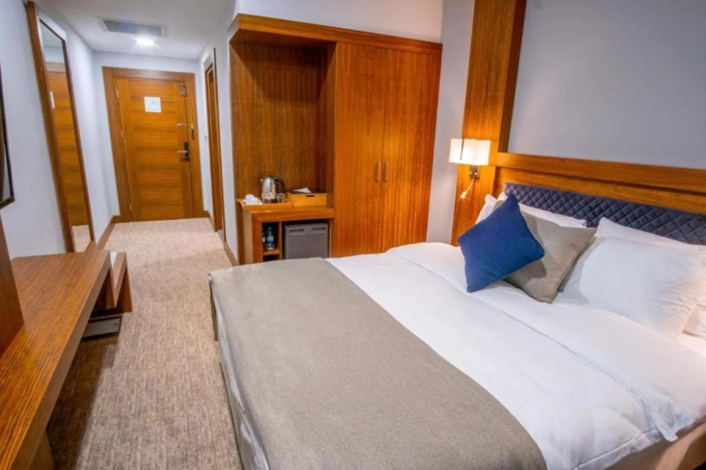 Чтобы вы могли отдохнуть после долгого дня, в номере есть душ, телевизор, халат и тапочки. Оснащение зависит от выбранной категории номера.