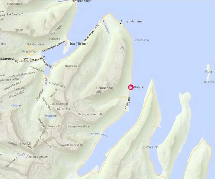 Отель Súðavík apartment, адрес на карте Болунгарвик, Aðalgata 2A, с описанием номеров и доступностью онлайн бронирования на ресурсе vashotel.ru , цены проживания и удобства.